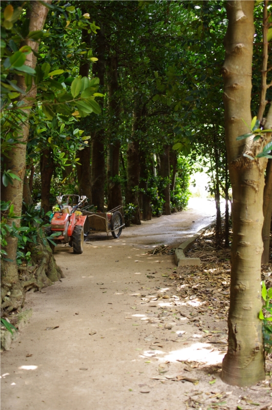 備瀬は本部半島の北西の端にある集落で、そこに沖縄では防風林や生け垣、街路樹としてメジャーな「フクギ」の並木道があるのです。